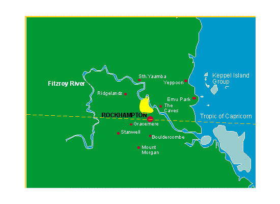 Many Coolibahs are now growing on the southern banks of the river, a result of the 1954 flood. Seeds were washed down stream. A view of the river from the main road is now almost impossible Stock would be driven from South Yaamba via the crossing and taken to Rockhampton. Very few avail themselves of this crossing today or the waterholes that were once popular. |